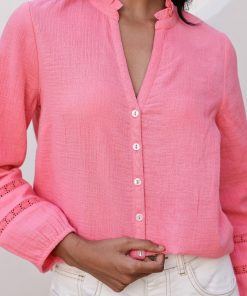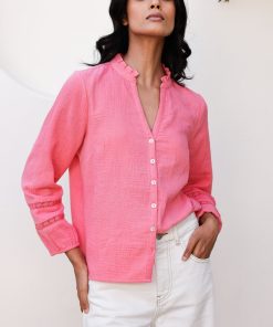 Aspiga Women’s Ilana Frill Organic Cotton Gauze Top | Light Pink | Pink