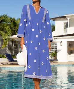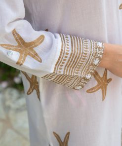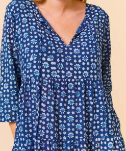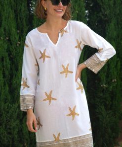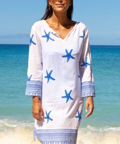 Aspiga Women’s Guadalupe Short Organic Cotton Tunic | Starfish White/cobalt | White & Cobalt