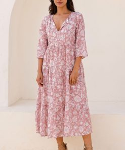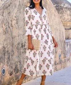 Aspiga Women’s Harem Organic Cotton Trousers | Flower Stamp Cornflower/white | Cornflower & White