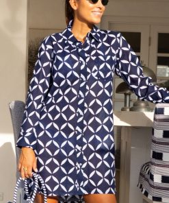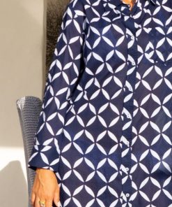 Aspiga Women’s Saffron Organic Cotton Beach Shirt | Shibori Navy/white | Navy & White