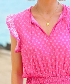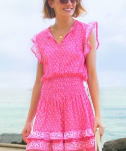 Aspiga Women’s India Embroidered Organic Cotton Dress | Strawberry Pink/white | Pink & White