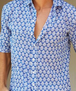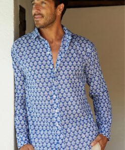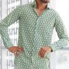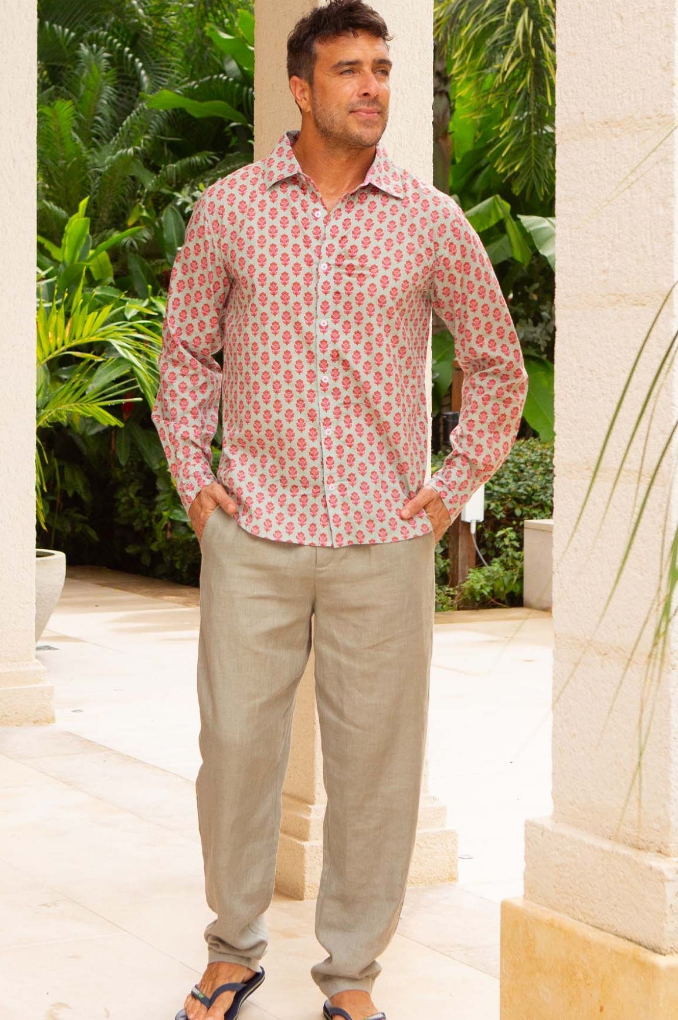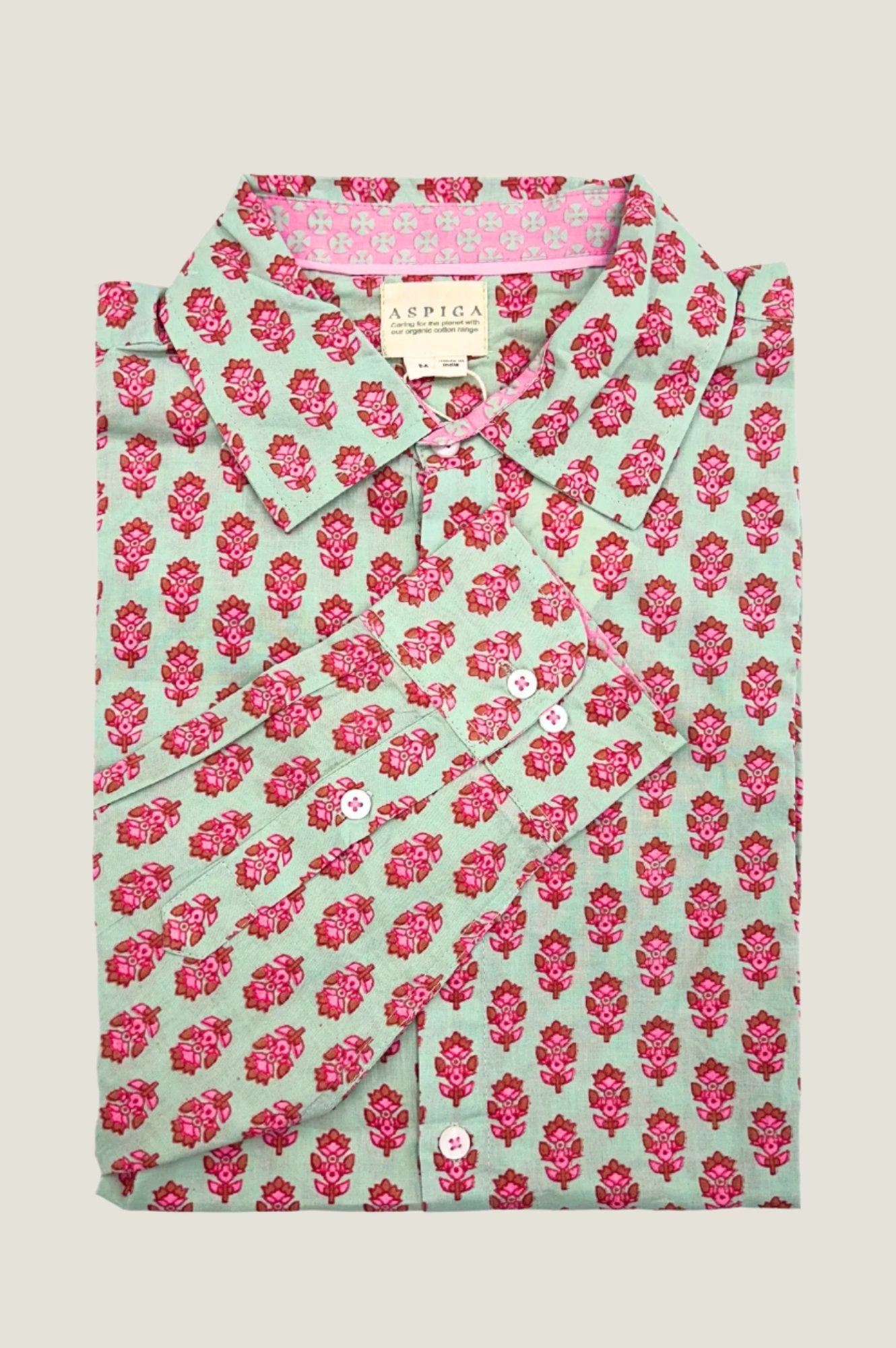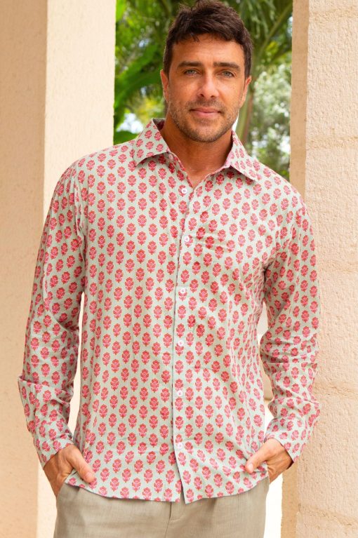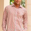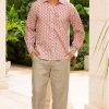 Aspiga Men’s Printed Cotton Shirt | Azalea Khaki/pink | Khaki & Pink