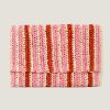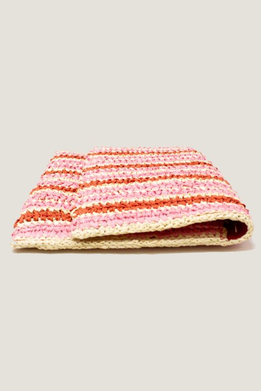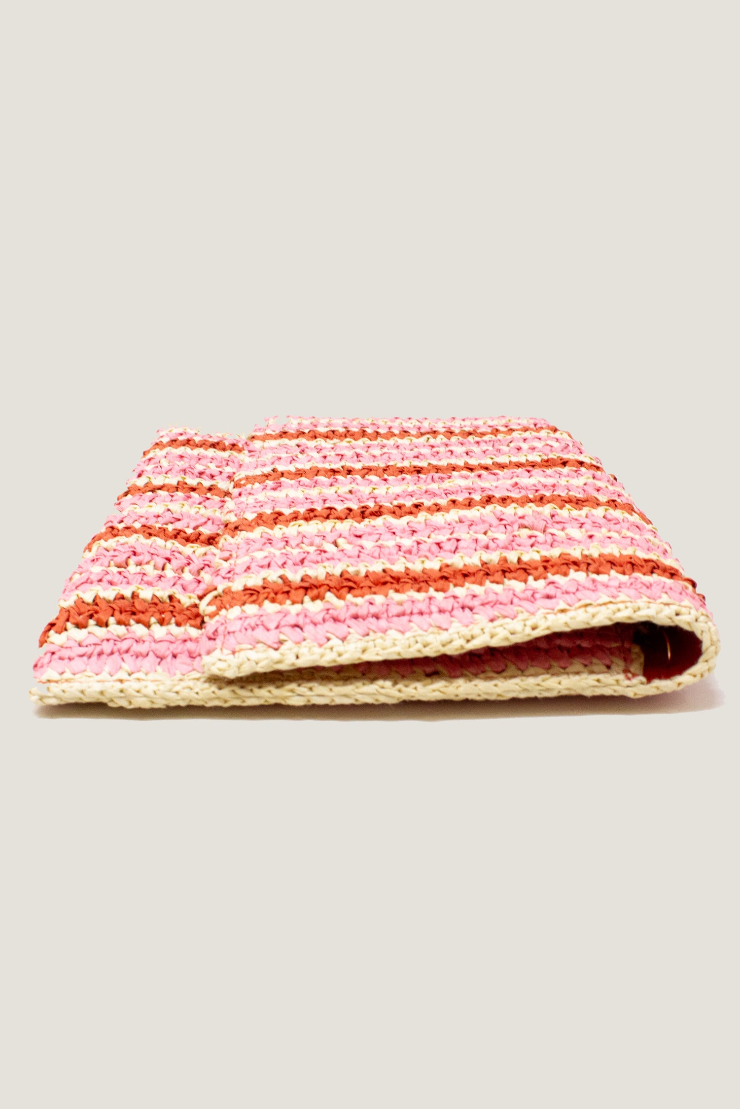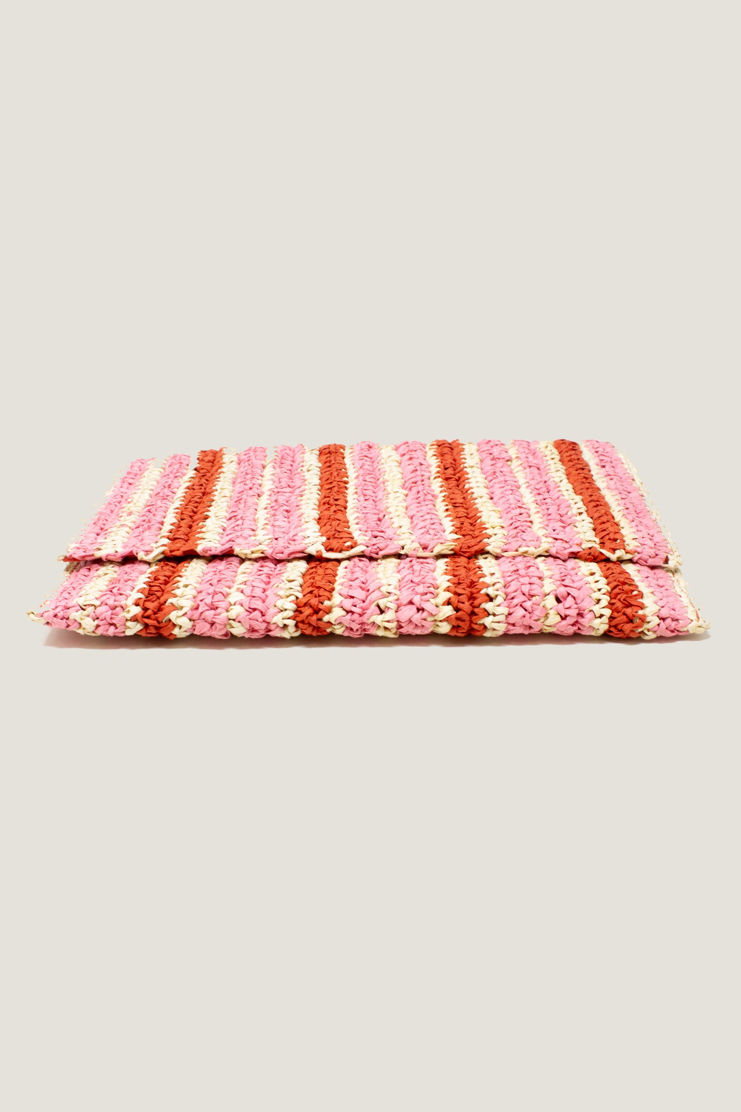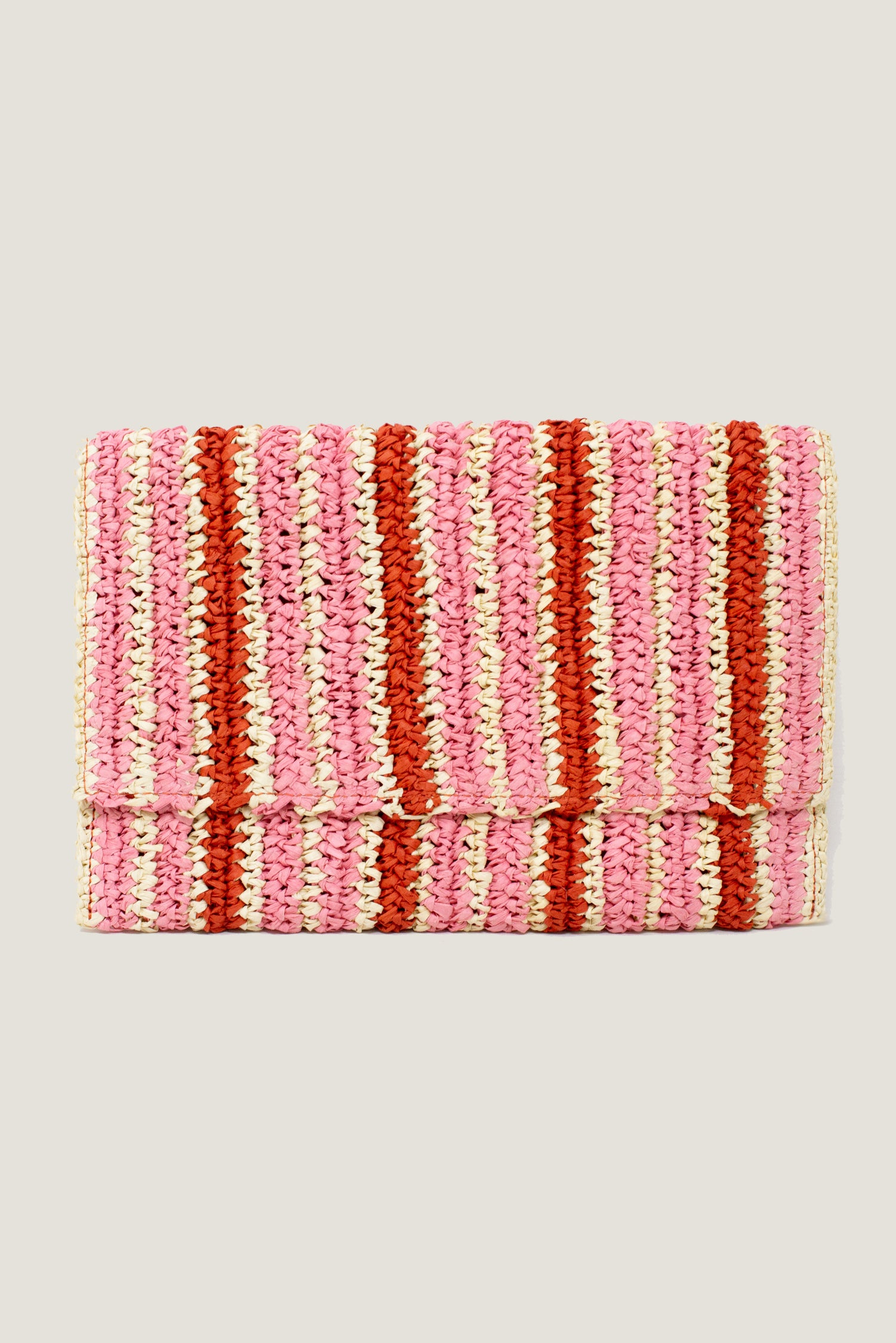 A new addition this summer is our Amalfi Raffia Stripe clutch. Its the perfect beach to bar accessory. It features a multicolour stripe and includes three magnetic closures to keep your valuables safe. It also includes an internal pocket.