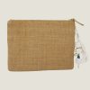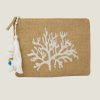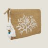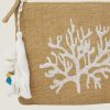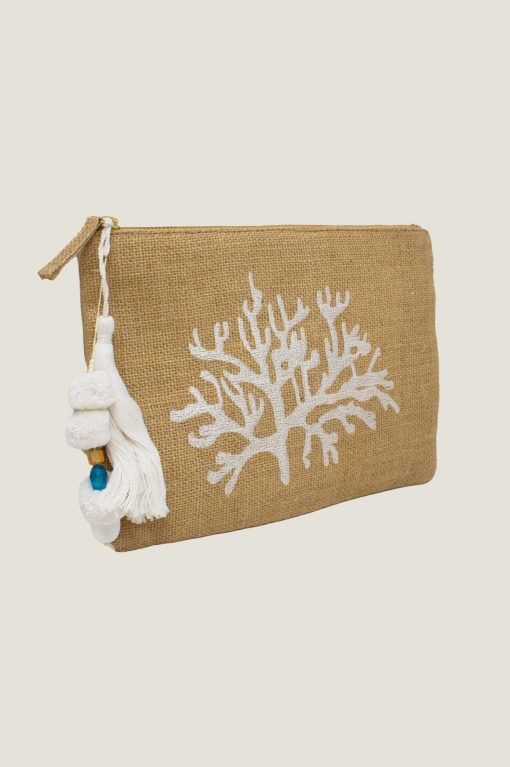 A perfect embroidered clutch bag that is compact and lightweight, composed of natural coloured woven fabric and finished with cotton embroidered coral motif.