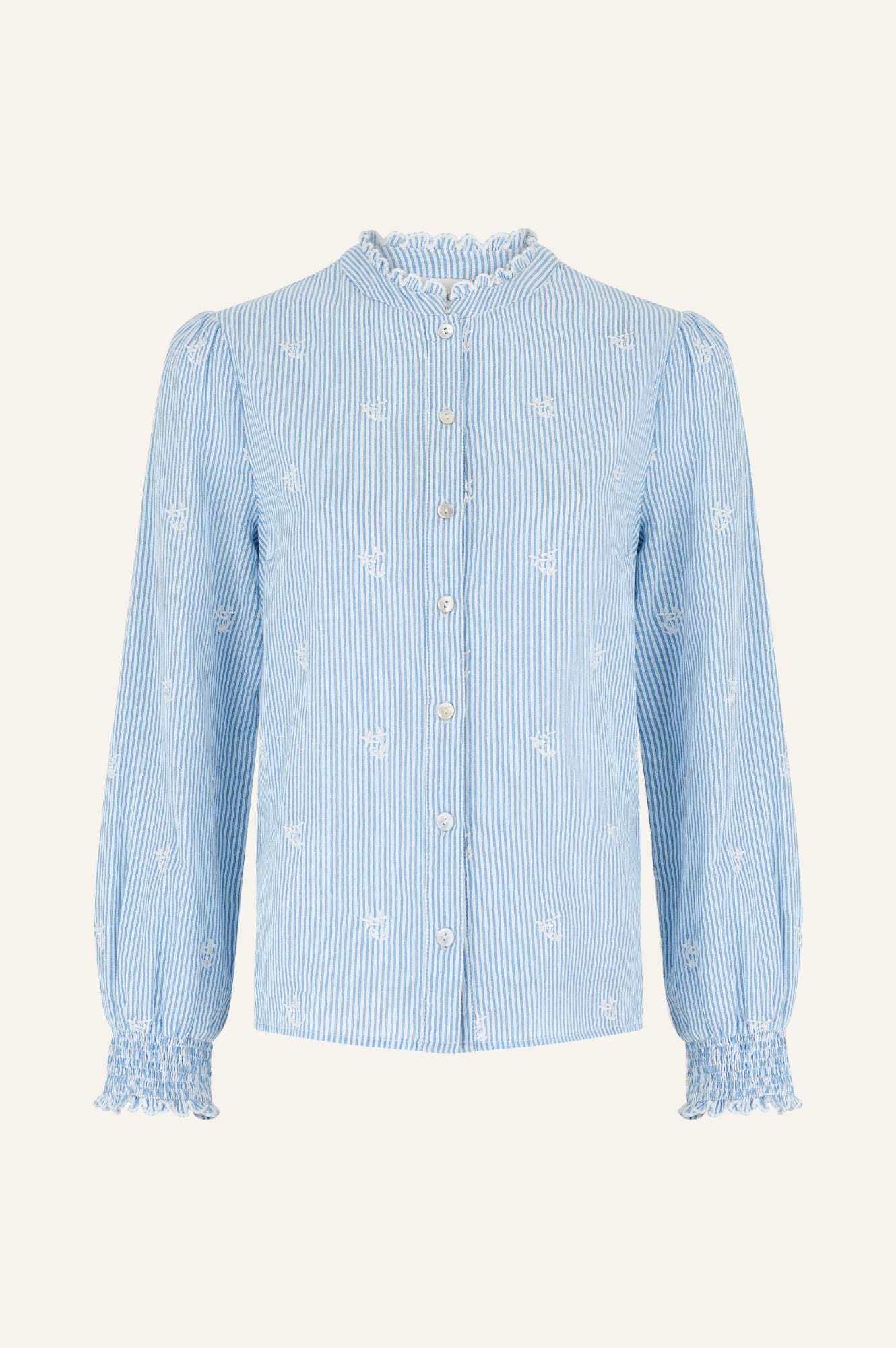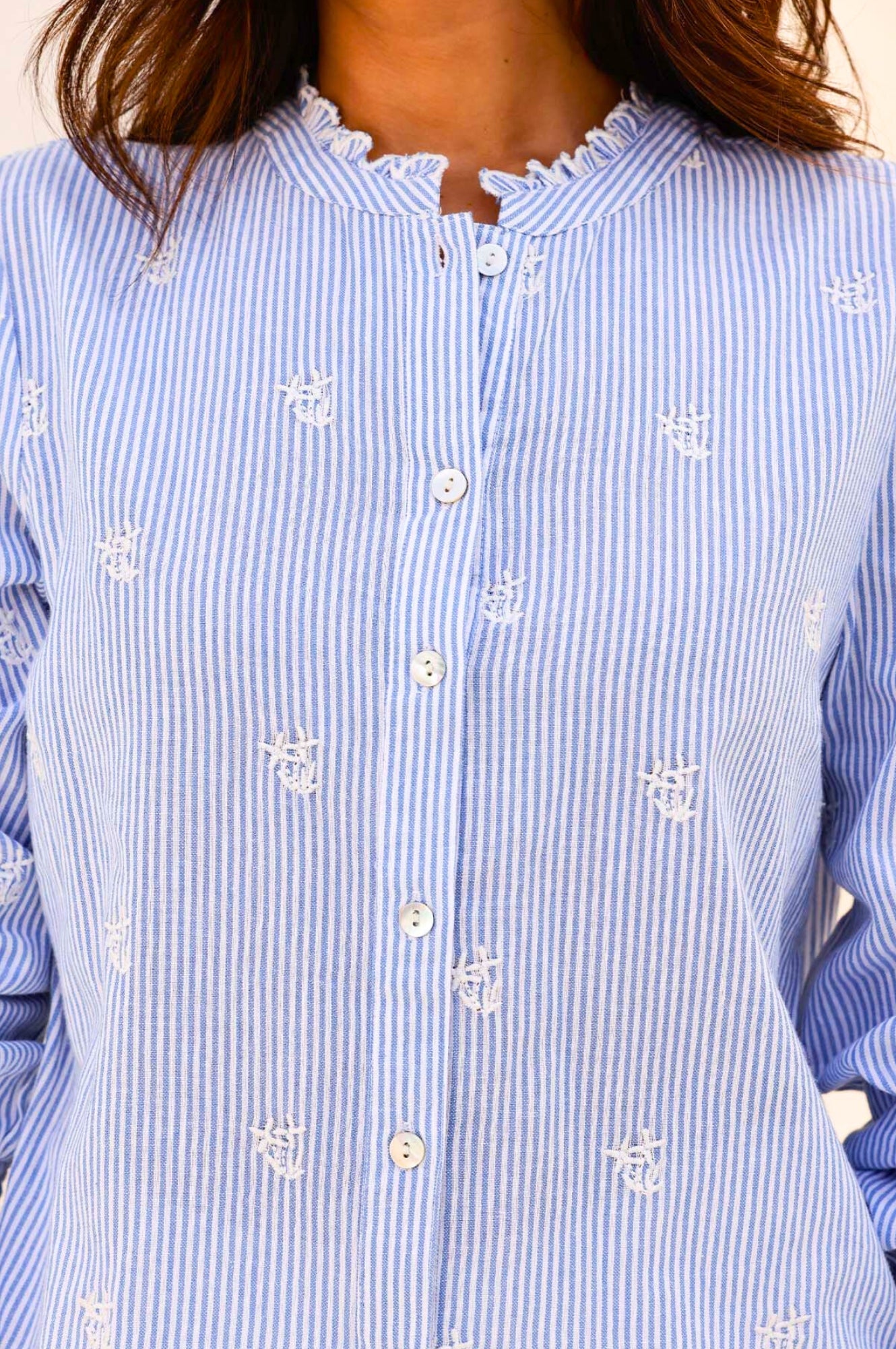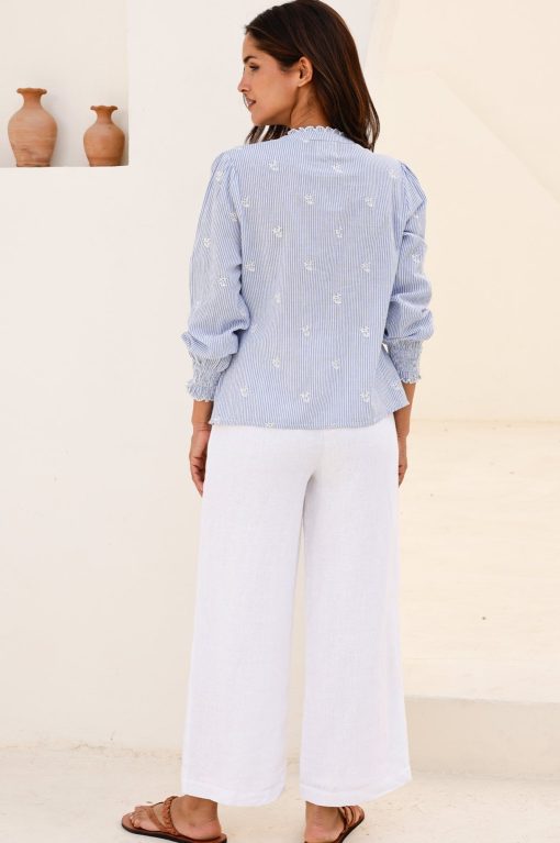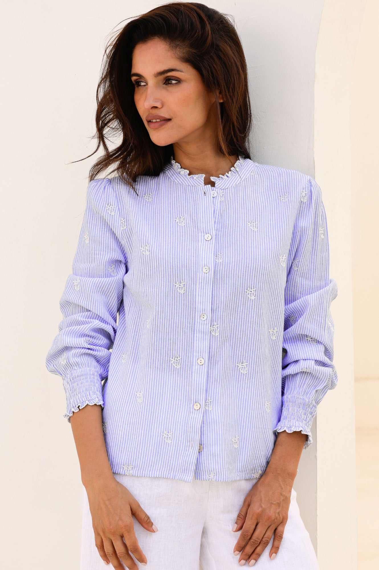 The Cosima Shirt is a new addition for this season. It features a classic button-through placket and showcases intricate embroidery motifs that add a unique touch to the design. Crafted from 100% Organic Cotton, this shirt is not only stylish but also eco-friendly, offering both comfort and sustainability. Its timeless design makes it a versatile piece for various occasions, while the delicate embroidery enhances its overall charm. Additionally, the shirt includes shirred, elasticated cuffs, which further enhance its comfort and make it perfect for everyday wear.