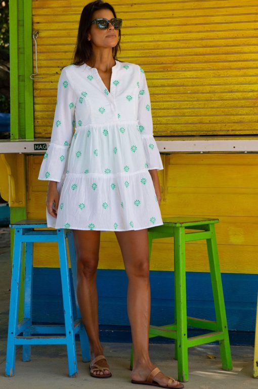 Aspiga Women’s Cristina Embroidered Kaftan | Buta White/green | White & Green