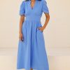 Crafted from responsibly sourced cotton cheesecloth, the Esha Dress features a flattering deep waistband that is shirred at the back for a comfortable, cinched-in fit. It’s beautifully detailed with ruched sleeves, gathering at the sleeve heads, and a V-notch neckline, adding a touch of elegance and charm to its design.