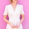 Crafted from responsibly sourced cotton cheesecloth, the Esha Dress features a flattering deep waistband that is shirred at the back for a comfortable, cinched-in fit. It’s beautifully detailed with ruched sleeves, gathering at the sleeve heads, and a V-notch neckline, adding a touch of elegance and charm to its design.