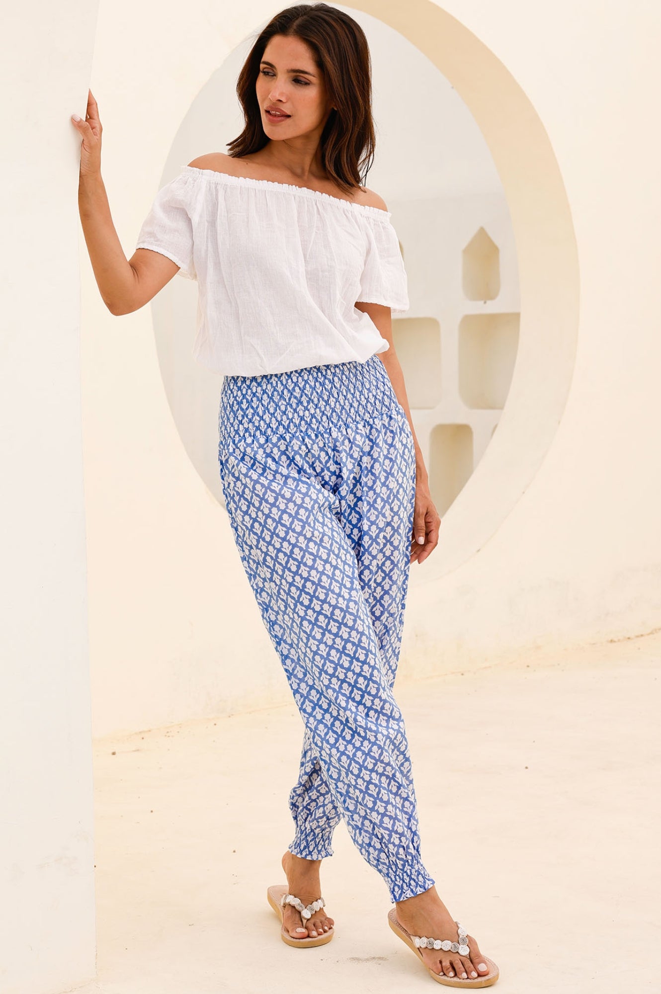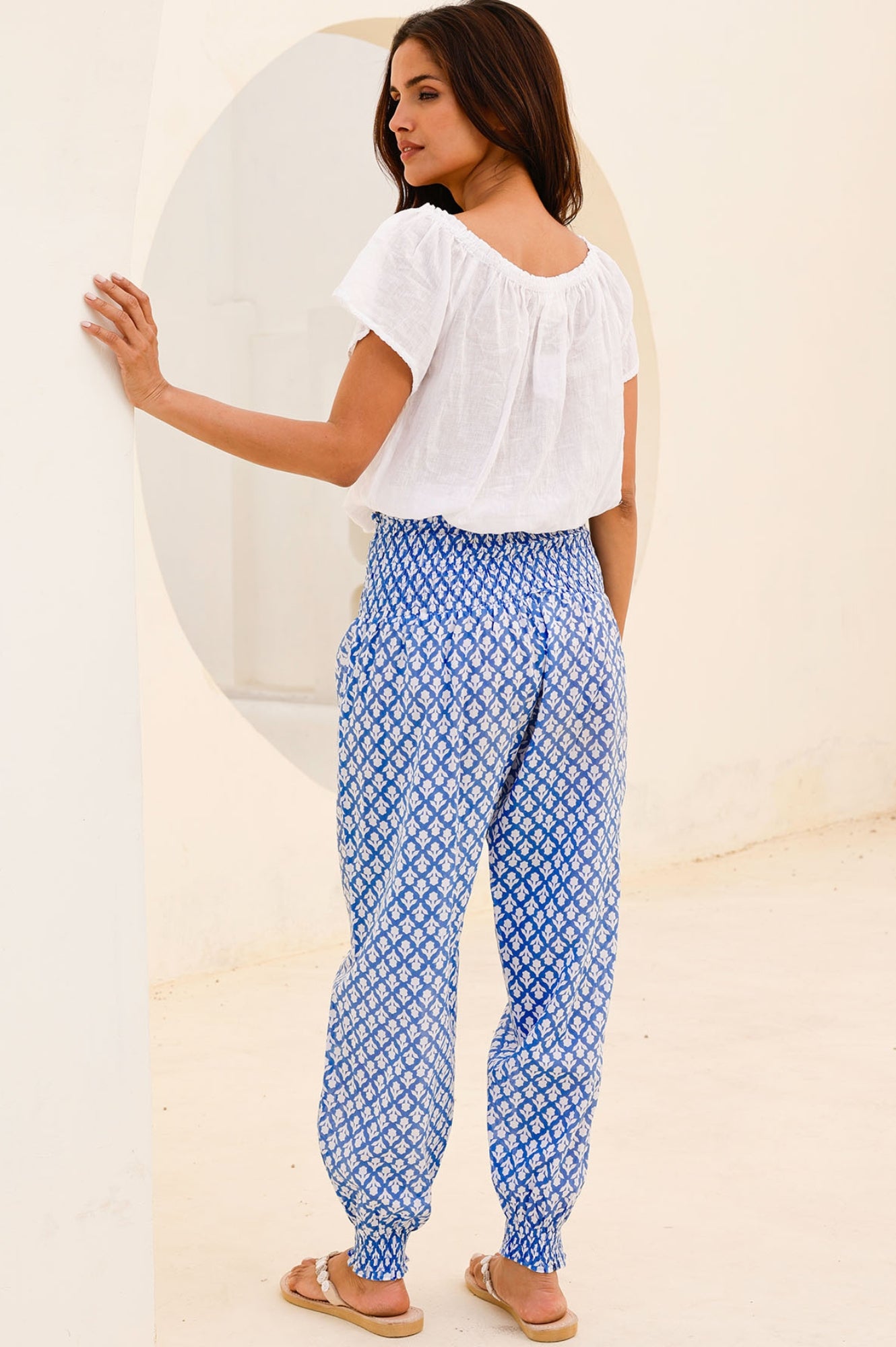 Our bestselling Harem Trousers are made from lightweight organic cotton in pretty Indian prints. With a wide soft shirred elasticated waistband and ankle cuffs, they are super comfortable for relaxing in!