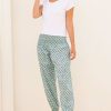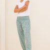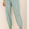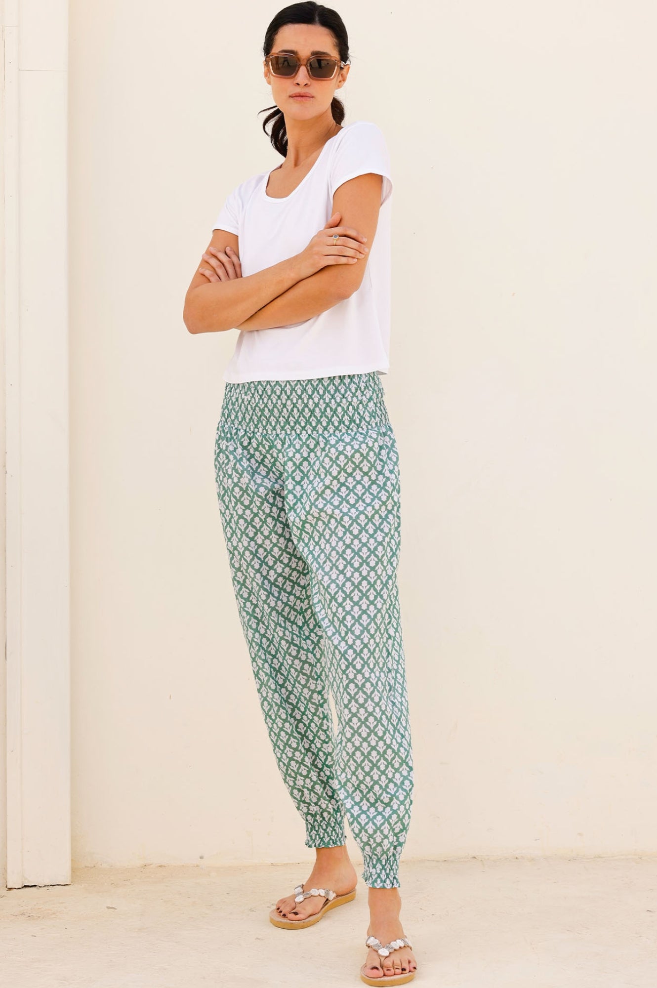 Aspiga Women’s Harem Organic Cotton Trousers | Flower Stamp Sage/white | Sage & White