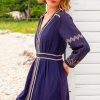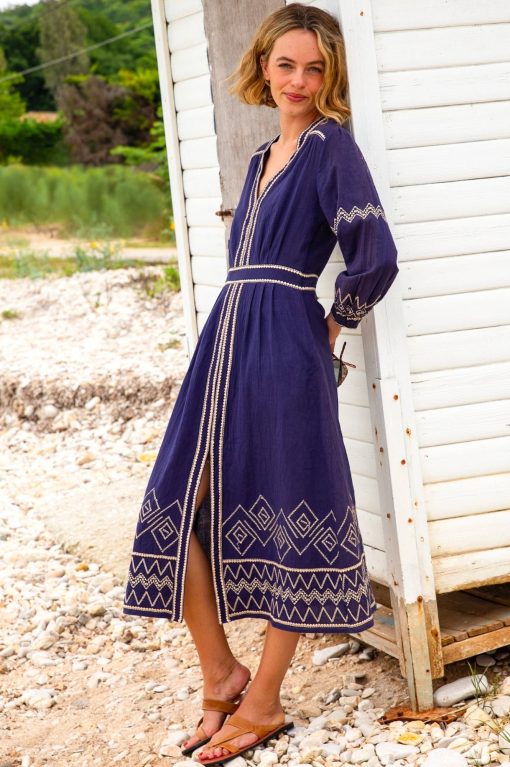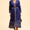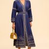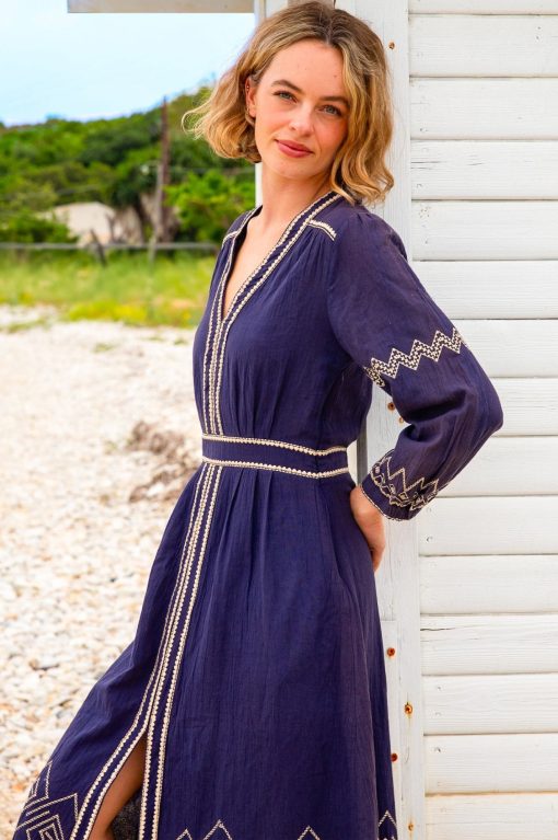 Aspiga Women’s Jamila Embroidered Dress | Navy/gold | Navy & Gold