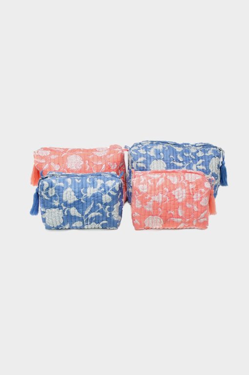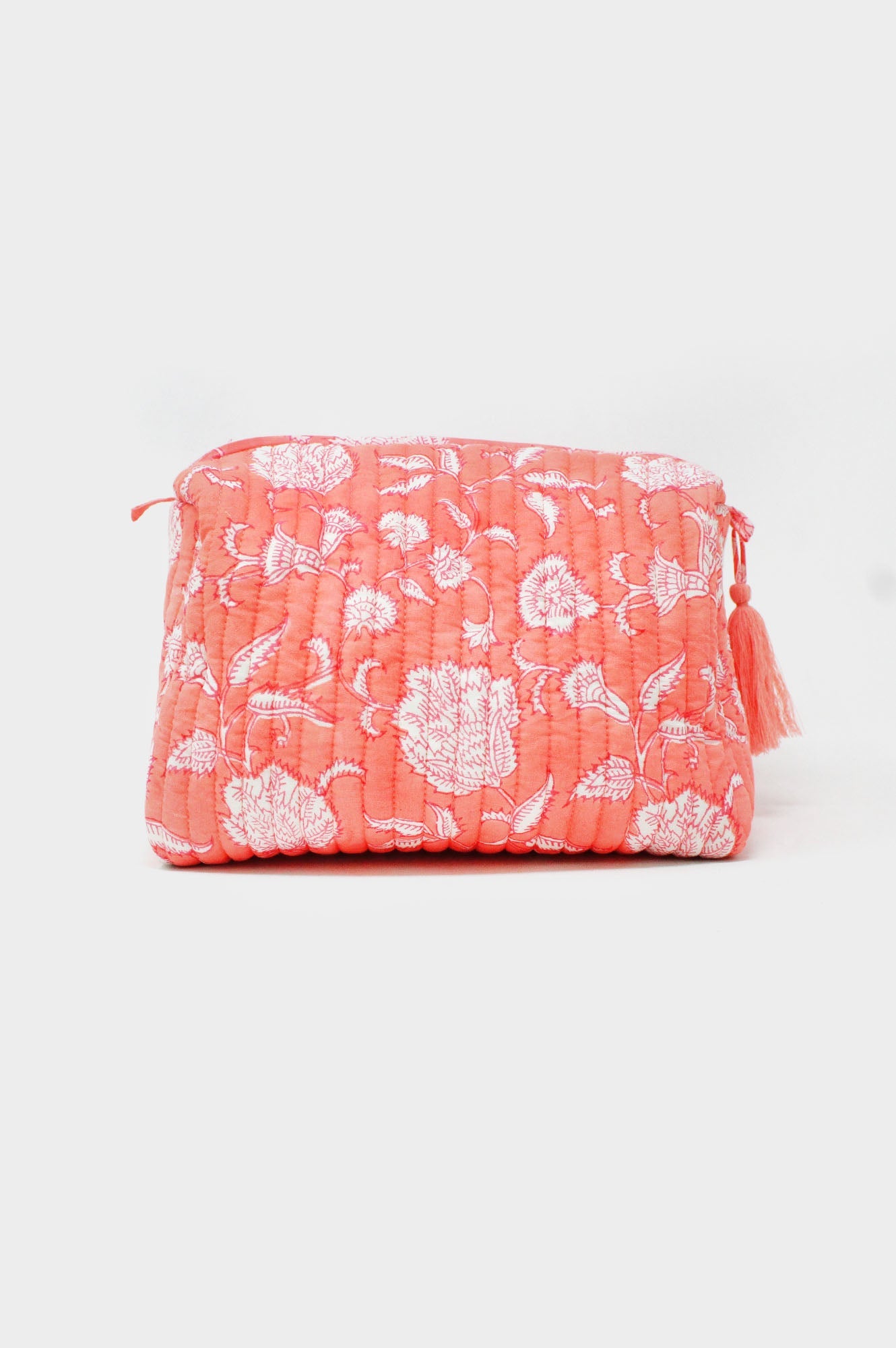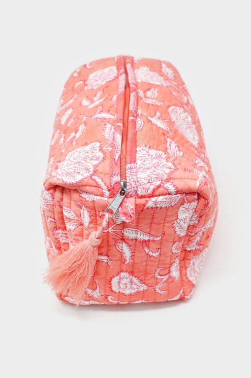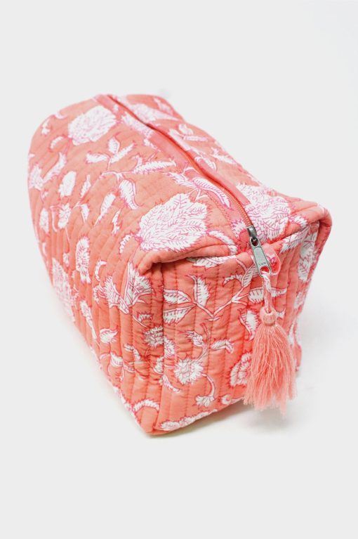 Part of our new block print accessories range, the wash bag is a generous size and perfect for taking away with you. The wash bag comes in two of our season’s block prints and utilises our leftover fabric reducing waste. Detailed with soft padded quilting, a tassel, and finished with a zip and inside pockets.