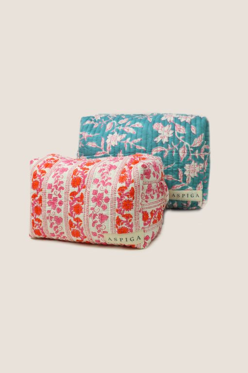 A new addition to our favourite Block Print accessory range, introducing new colours and an improved zip length for versatility. These quilted cosmetic bags with inside pockets are made from our left over, hand printed organic cotton.