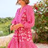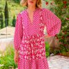 Aspiga Women’s Marina Organic Cotton Print Mix Dress | Dianthus Print Pink/white | Pink & White