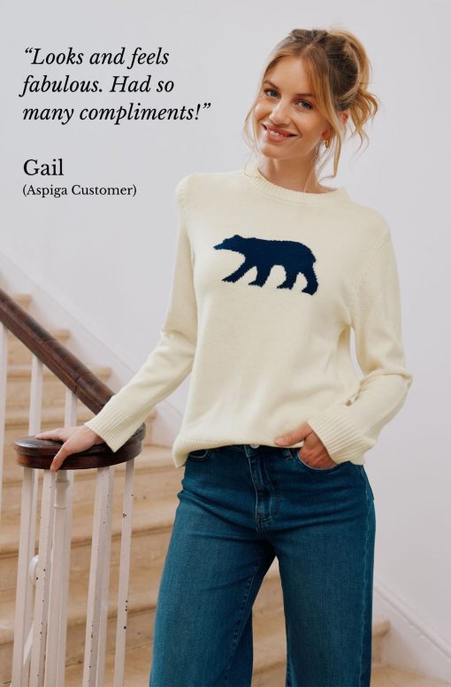 The finest 100% merino wool yarn gives this jumper a wonderfully soft cashmere feel. With a relaxed fit and ribbed neck, cuffs and hem, this fun polar bear motif will brighten your winter blues. Half price knitwear comb with every purchase – discount applied at checkout when you add one to your basket.