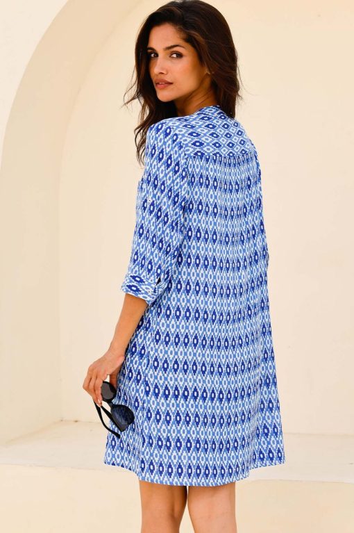 Bringing back our relaxed Mila Shirt Tunic in a fun and vibrant new print. Featuring a v-neckline, button-down front, 3/4 length sleeves with the option to roll them up with an adjustable button tab. Finished with a front pocket and cut to a mini length with a dipped hem at the back.