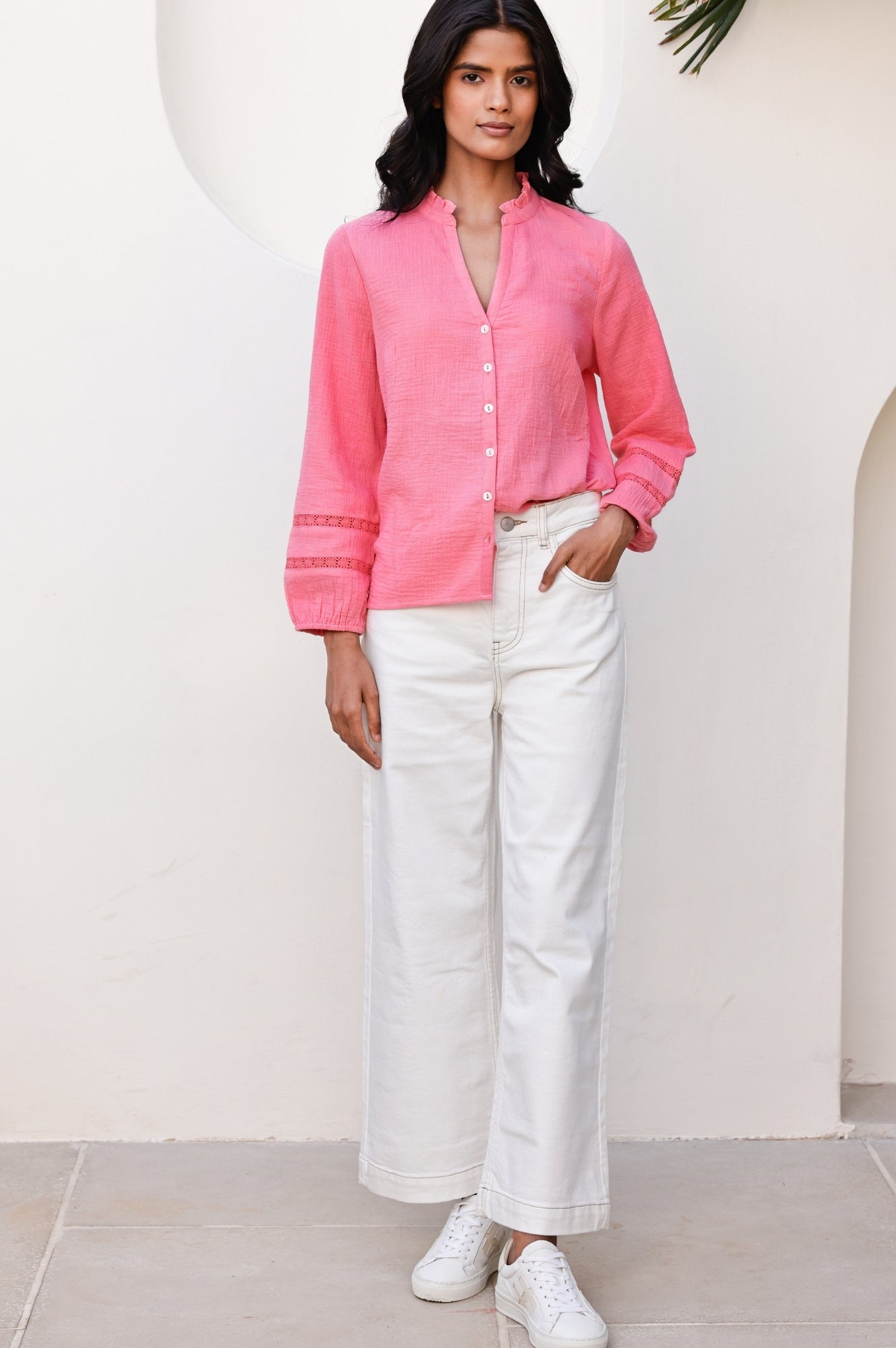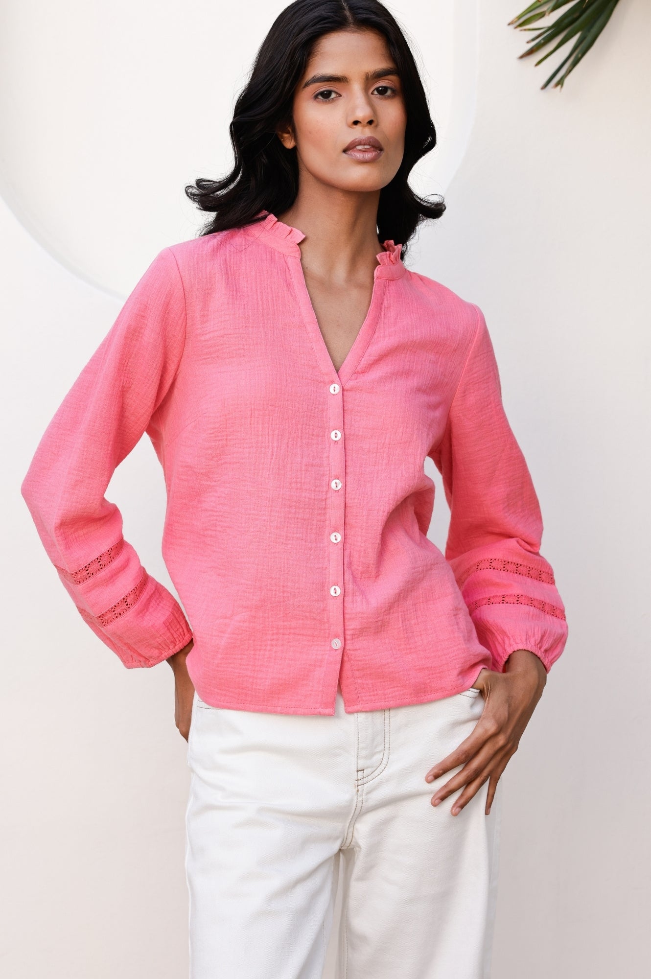 Aspiga Women’s Mina Organic Cotton Cheesecloth Blouse | Pink Lemonade | Coffee