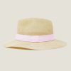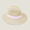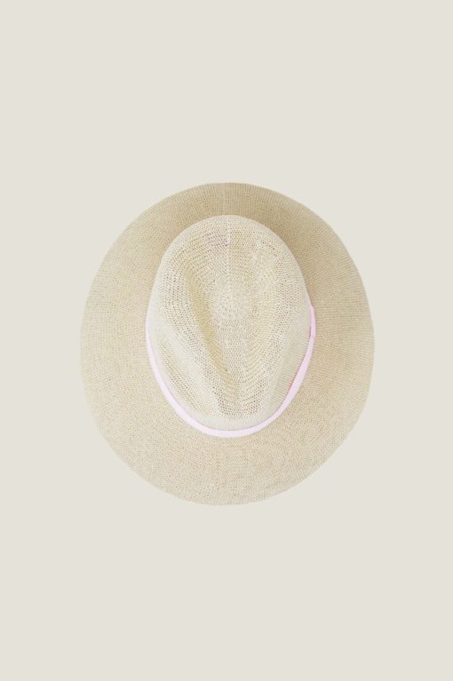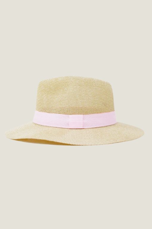 A timeless classic woven straw hat, by UK brand Somerville, with a flat brim and adorned with a pink ribbon. Made from paper raffia, our hats are one size with an adjustable inner tie. With a choice of brightly coloured ribbons, they complete your summer look.