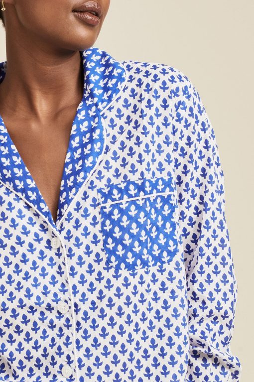 Introducing our lightweight and breathable Pyjama Set is made from soft organic cotton, in a classic button-down design with piping detail. Featuring a contrasting print on the collar, front pocket and cuffs. Paired with the full-length matching bottoms with an elasticated, drawstring waistband and concealed side pockets.
