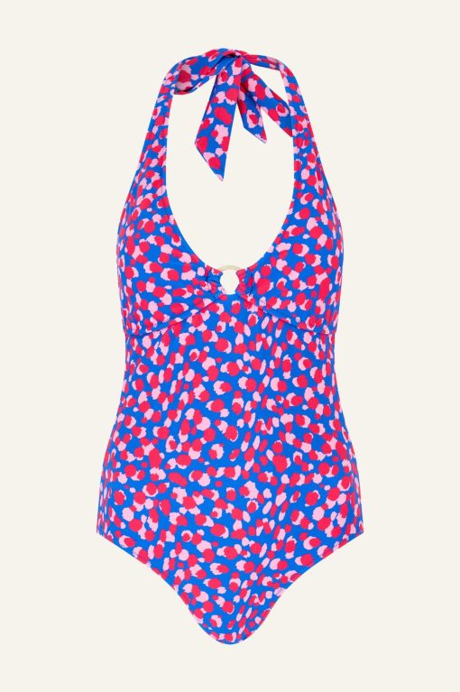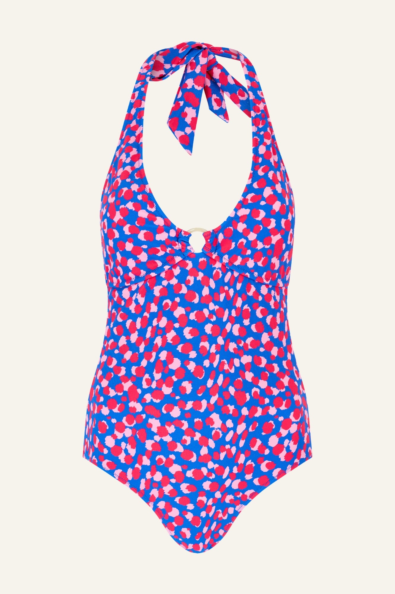Made from recycled nylon our swimwear is responsibly sourced to reduce waste originally headed for landfill. Be sure to pack the Halter Neck Swimsuit on your next getaway. This flattering one-piece is made from double-layered fabric for a premium finish, featuring a deep plunge V-neck with a faux horn ring detail.