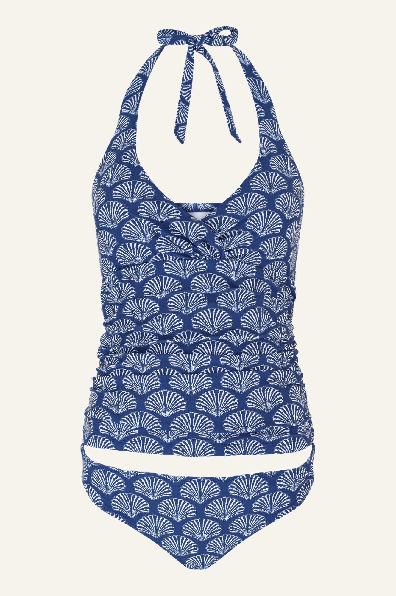 Made from recycled nylon our swimwear is responsibly sourced to reduce waste originally headed for landfill. Be sure to pack the Ruched Tankini on your next getaway. This flattering two-piece is made from double-layered fabric for a premium finish, featuring a deep plunge V-neck top and bikini bottoms.