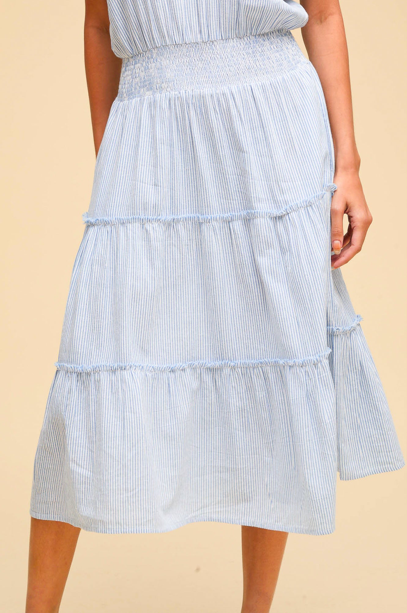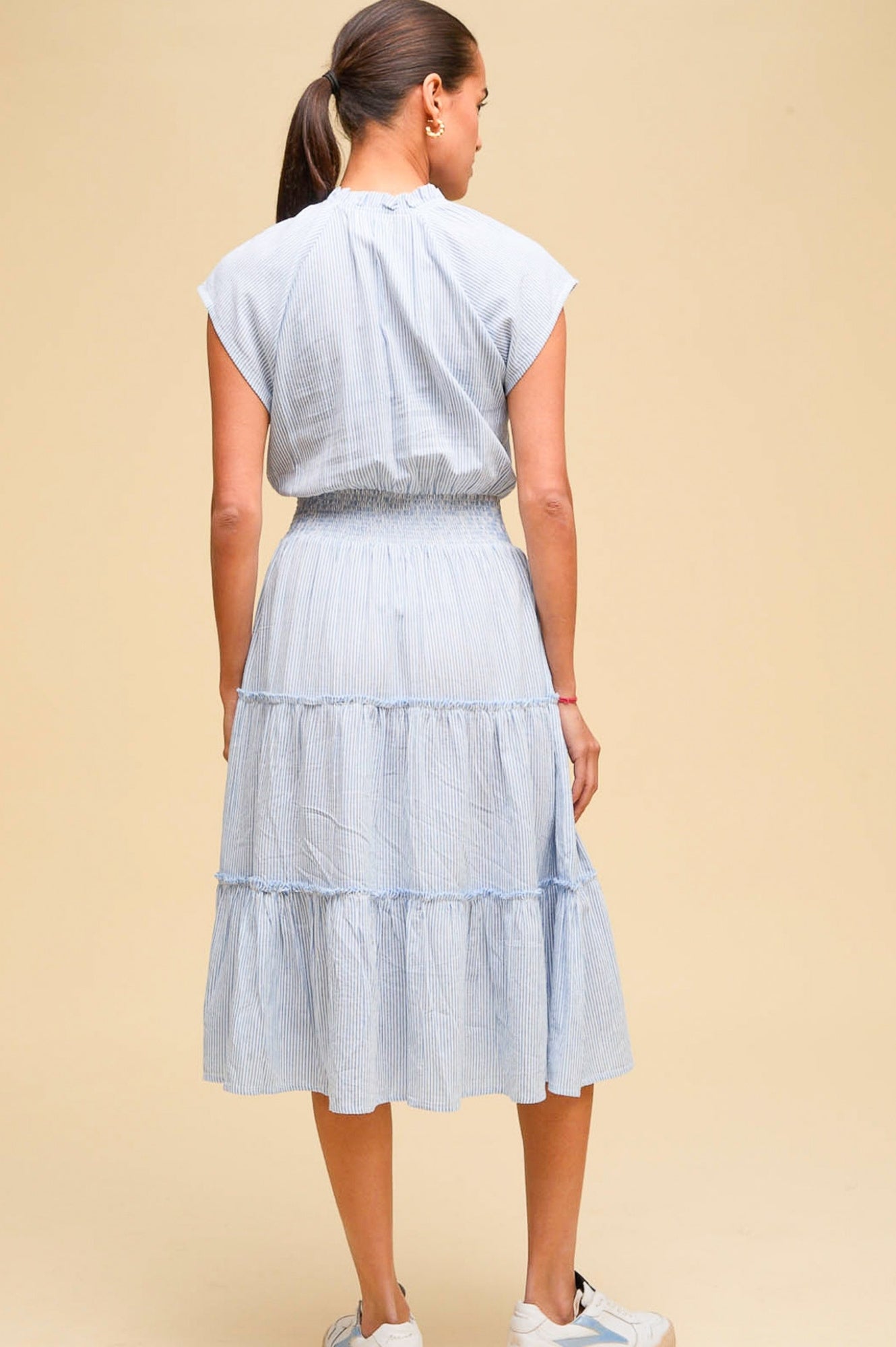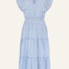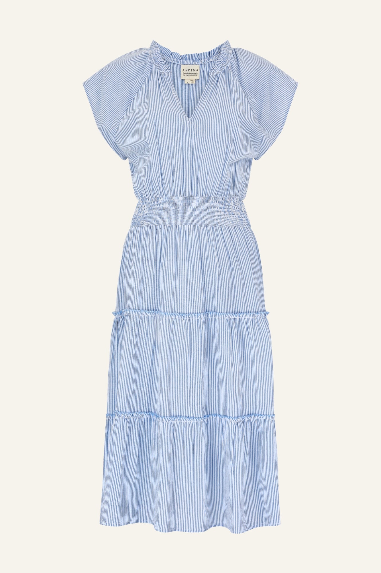 Effortless and relaxed, the Riley Dress is perfect for travel and weekend wear. This midi dress features flower embroidery motifs, a smocked waist, a flowing skirt, and a ruffled tiered hem. Made from airy, luxurious organic cotton gauze, it’s ideal for a seamless transition from spring to summer.