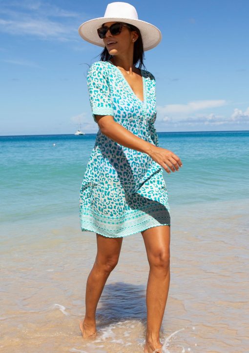 A best-selling style, the Santorini dress is made from lightweight organic cotton and features a bold print with a contrast border print on the neck, hem and cuffs. Ideal for holidays and hot summer days, the dress is unlined to keep you cool.