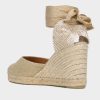 Introducing the Carina Espadrilles by Castañer. Featuring a canvas upper and an almond-shaped closed toe. Finished with fully adjustable, wrap-around ankle straps on a soft cushioned insole with a jute plaited wedge.