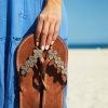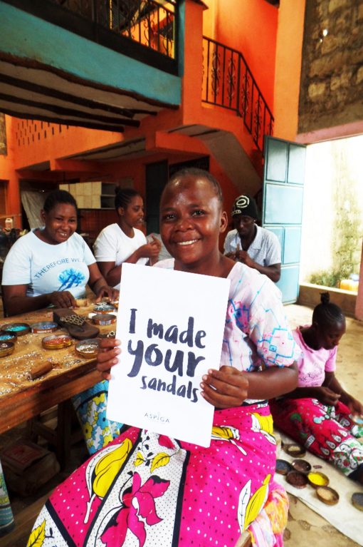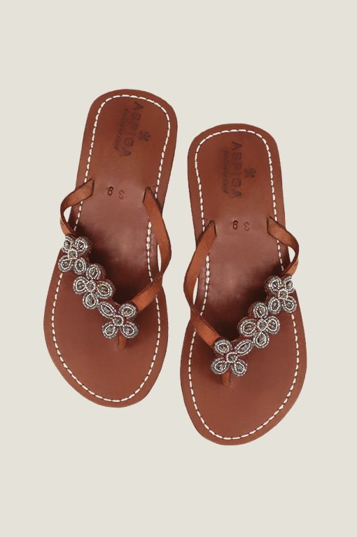 A gorgeous pair of sandals hand-made in Kenya, embellished with sustainable glass beads in a beautiful design. Each pair is lovingly crafted with a leather upper on a heeled recycled rubber sole.