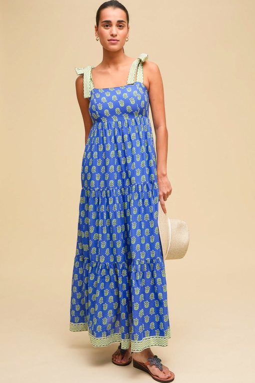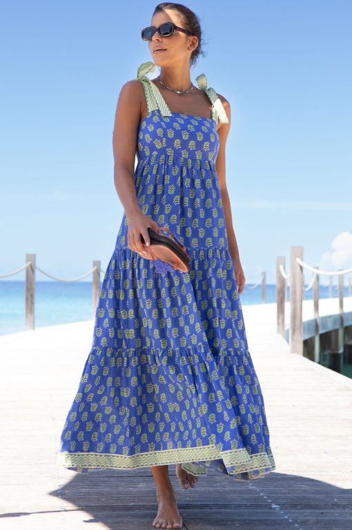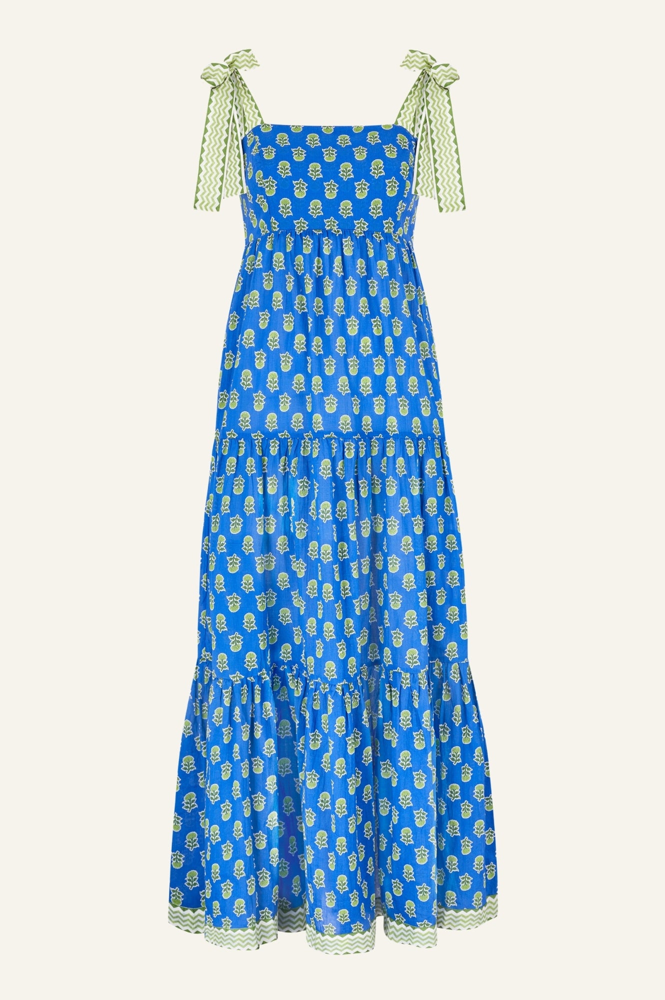 The perfect elevated sundress, our best-selling Tabitha dress is crafted from lightweight organic cotton. With wide tie shoulder straps in a contrast print, Tabitha is a full maxi, flattering all shapes with a fixed bodice and shirred back panel and a long fit and flare skirt flowing from under the bust. A contrast hem completes the look.We offer this dress in two lengths; our existing regular length is recommended for people over 5ft 6, and our petite length which is recommended for women who are 5ft 5ins and under, or for those who would like to wear it more at a midi length. The fit of the dress is unchanged and is not a petite fit. It’s the same as the regular fit but just 7.5cm shorter.