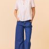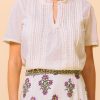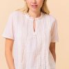 Introducing the Vienna Short Sleeve Blouse, a stylish new addition for the season. Crafted from 100% Organic Cotton, this blouse effortlessly combines comfort and elegance. It features soft pintuck detailing along the center front, delicate lace inserts, and a flattering v-notch neckline with a self-covered button fastening, adding a refined touch. The perfect blouse for your spring and summer wardrobe.