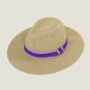 This chic visor is crafted from paper straw and features a trendy gold metallic stripe on the brim and band. The expandable head band ensures a comfortable and adjustable fit, while the metallic thread straw details adds a touch of glamour.