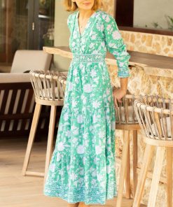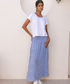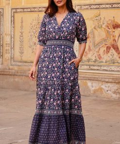 Aspiga Women’s Billie Short Sleeve Organic Cotton Dress | Primrose Stamp Navy/pink | Navy & Pink